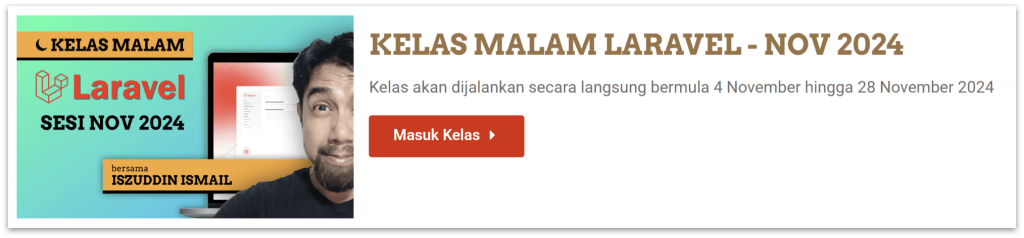 Terima kasih kerana mendaftar untuk program Kelas Malam Laravel (November 2024) daripada KelasProgramming.com.