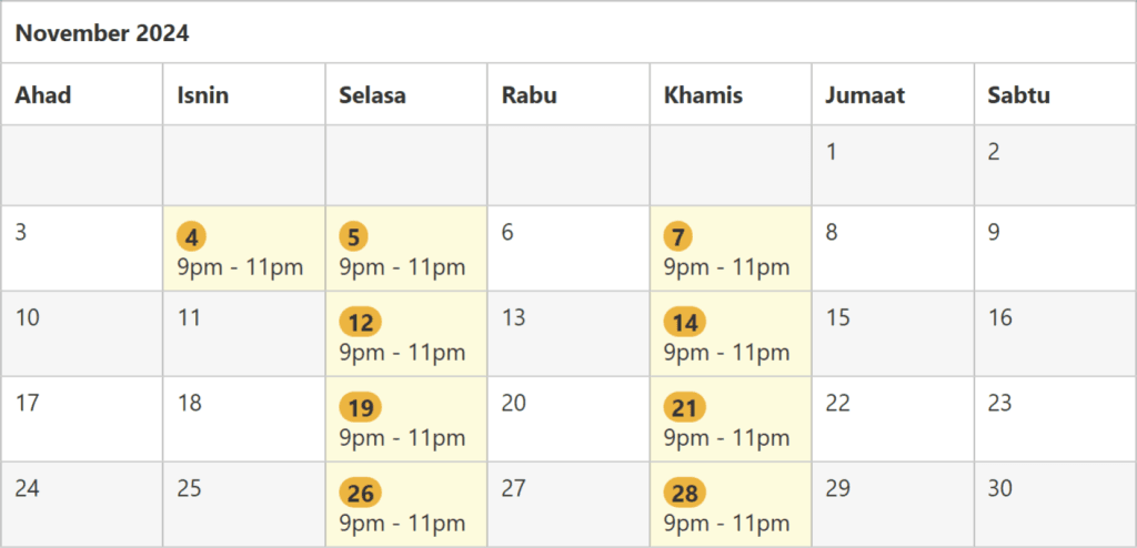 Rakaman kelas akan dibuat pada keesokan hari selepas Kelas Live berlangsung. Tonton rakaman kelas dari portal di KelasProgramming.com seperti dimaklumkan di atas.