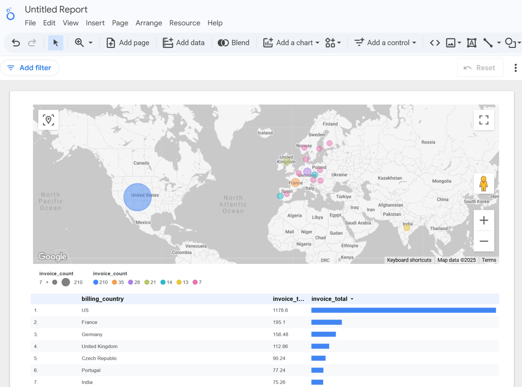 | Menghasilkan rajah dan diagram dalam Looker Studio dengan data dari Data Source |